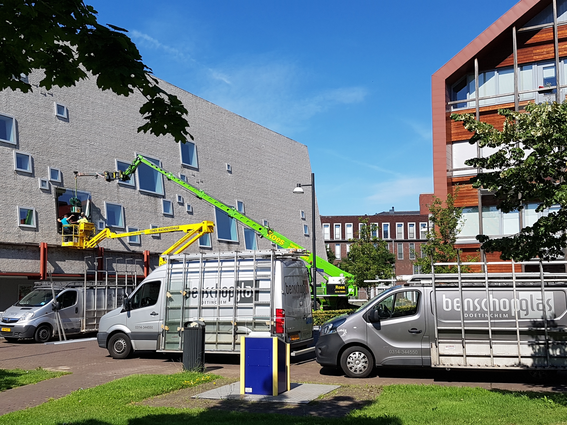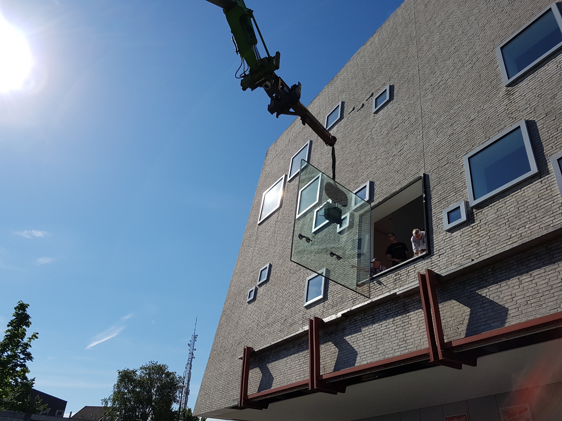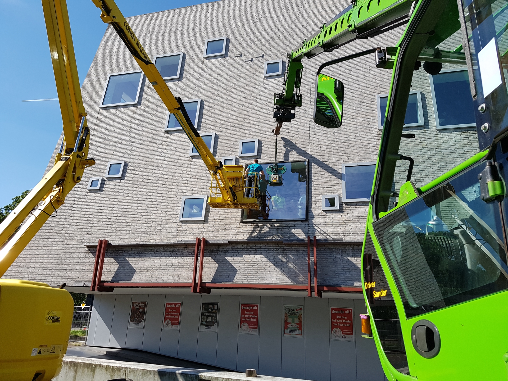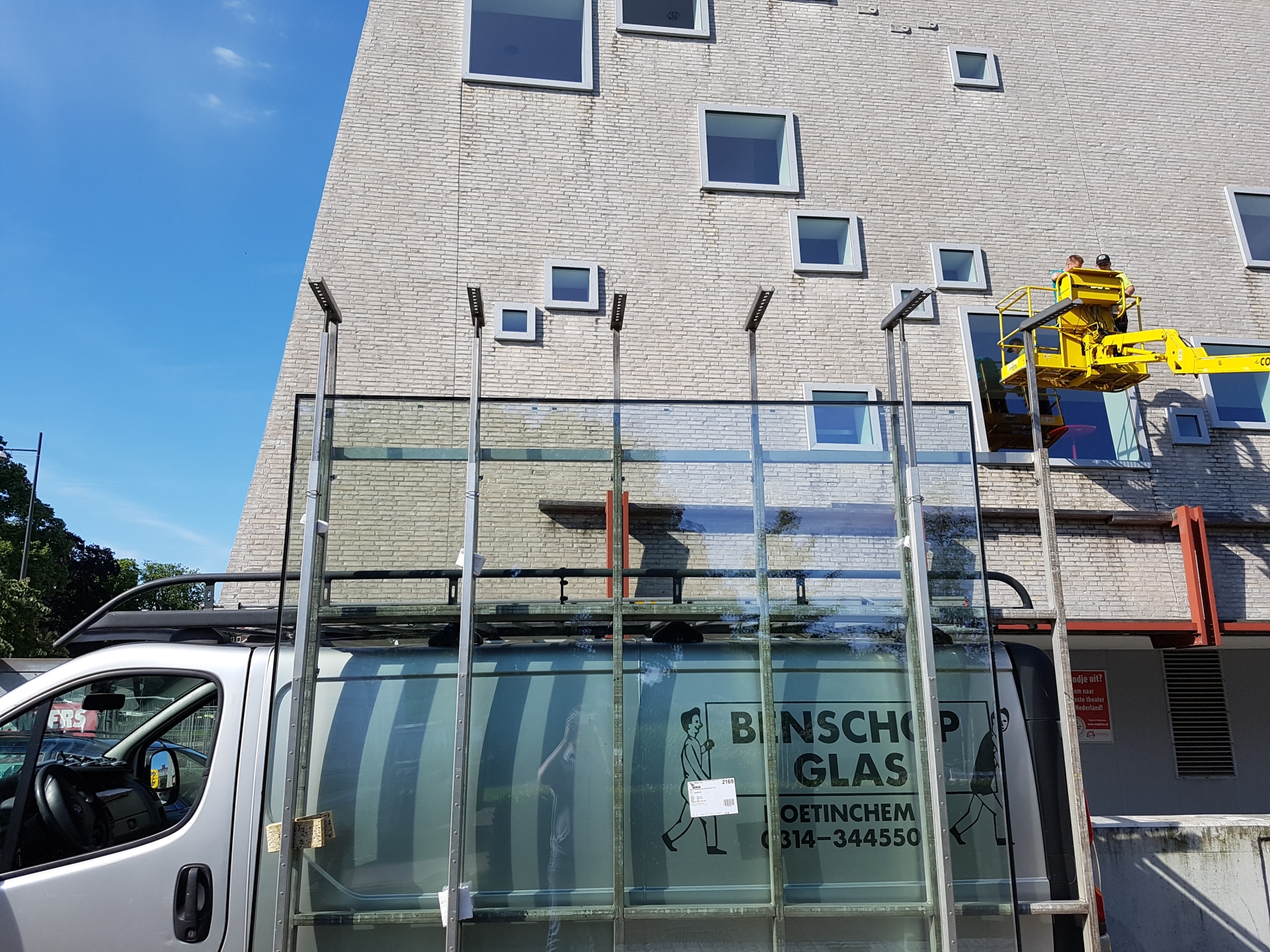 Benschop Glas herstelt glasschade aan schouwburg Het Amphion in Doetinchem.